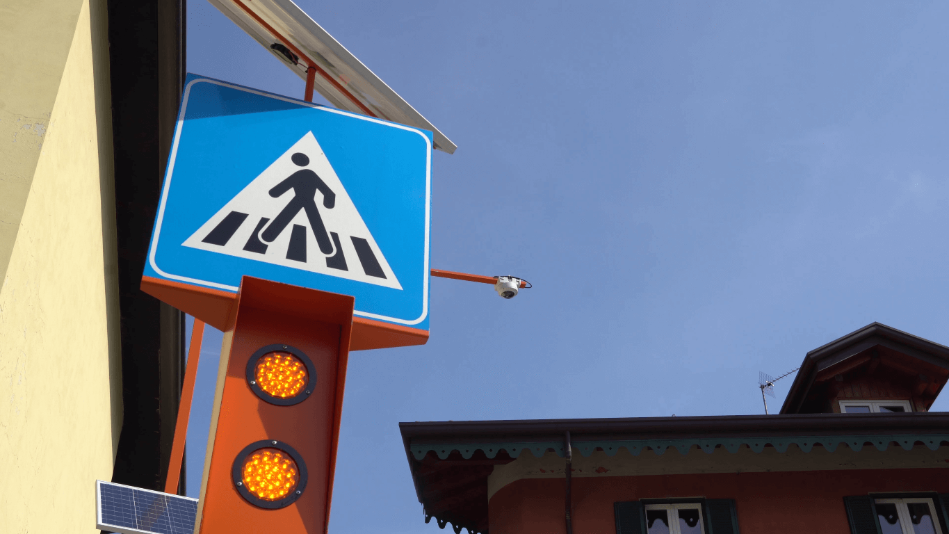 In totale 6 impulsi luminosi di segnalazione che giocano d’anticipo e incrementano la visibilità del passaggio pedonale in automatico, semplicemente con la presenza umana, mentre una telecamera fisheye con riprese a 360° e quadruple monitora il passaggio in tempo reale e permette di recuperare le registrazioni in caso di incidente.